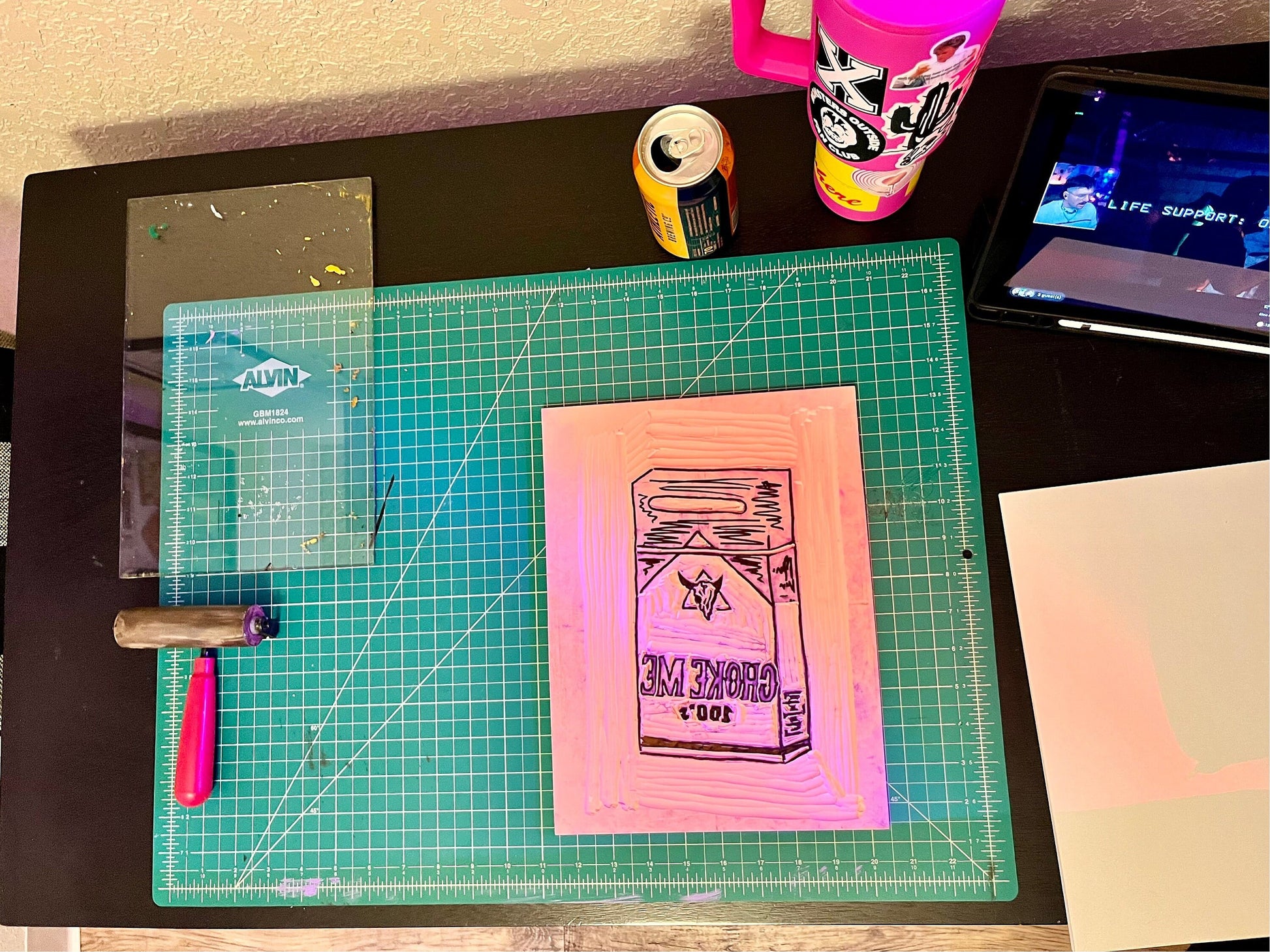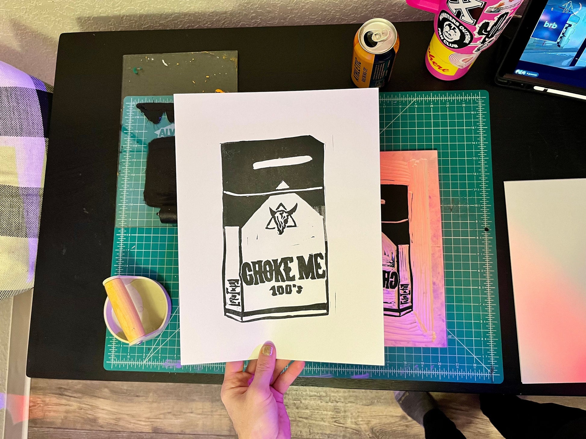 Please note, the nature of Lino block printmaking is that each print is hand pulled, and can vary slightly in ink distribution on the paper from the photos.