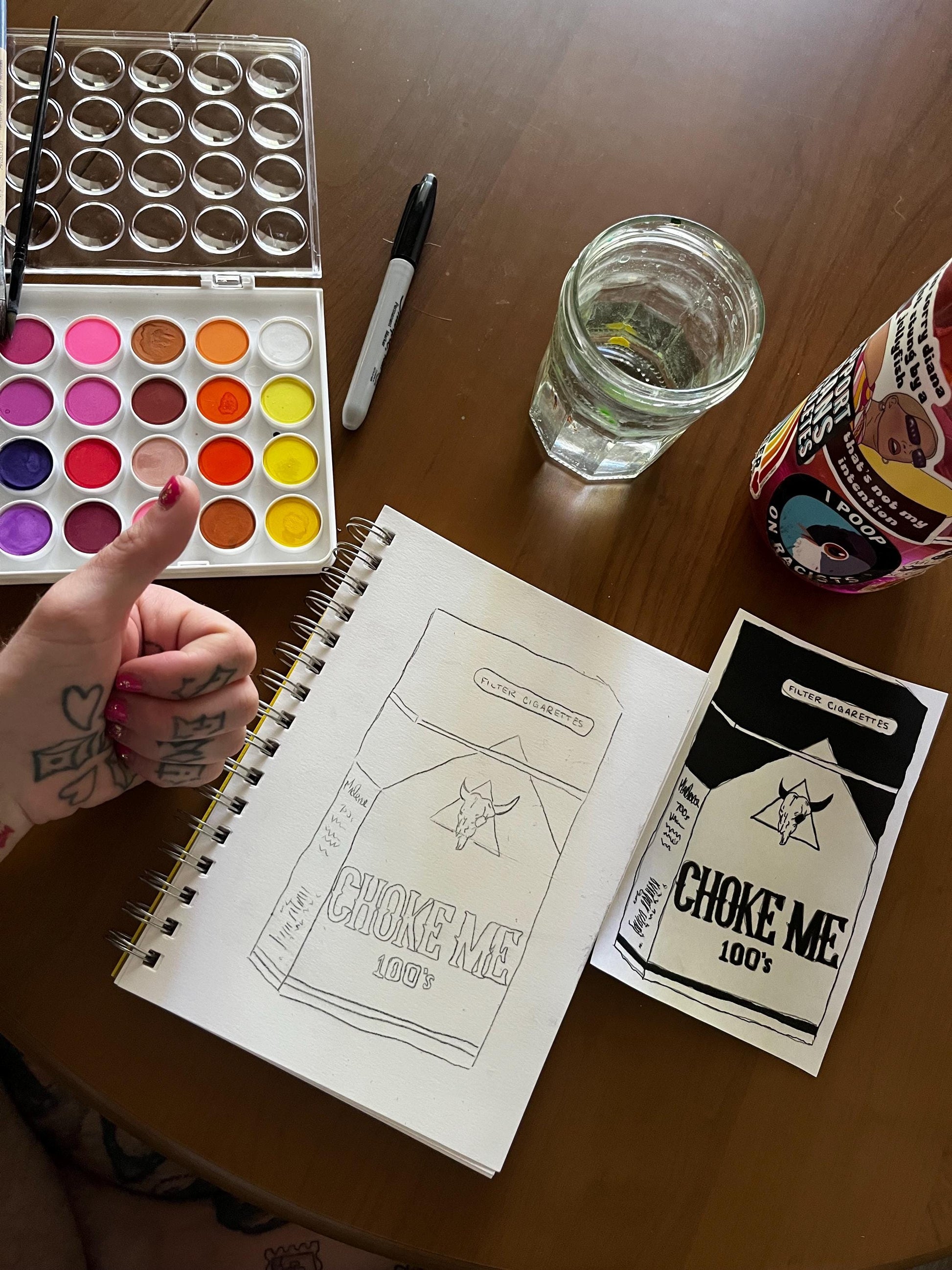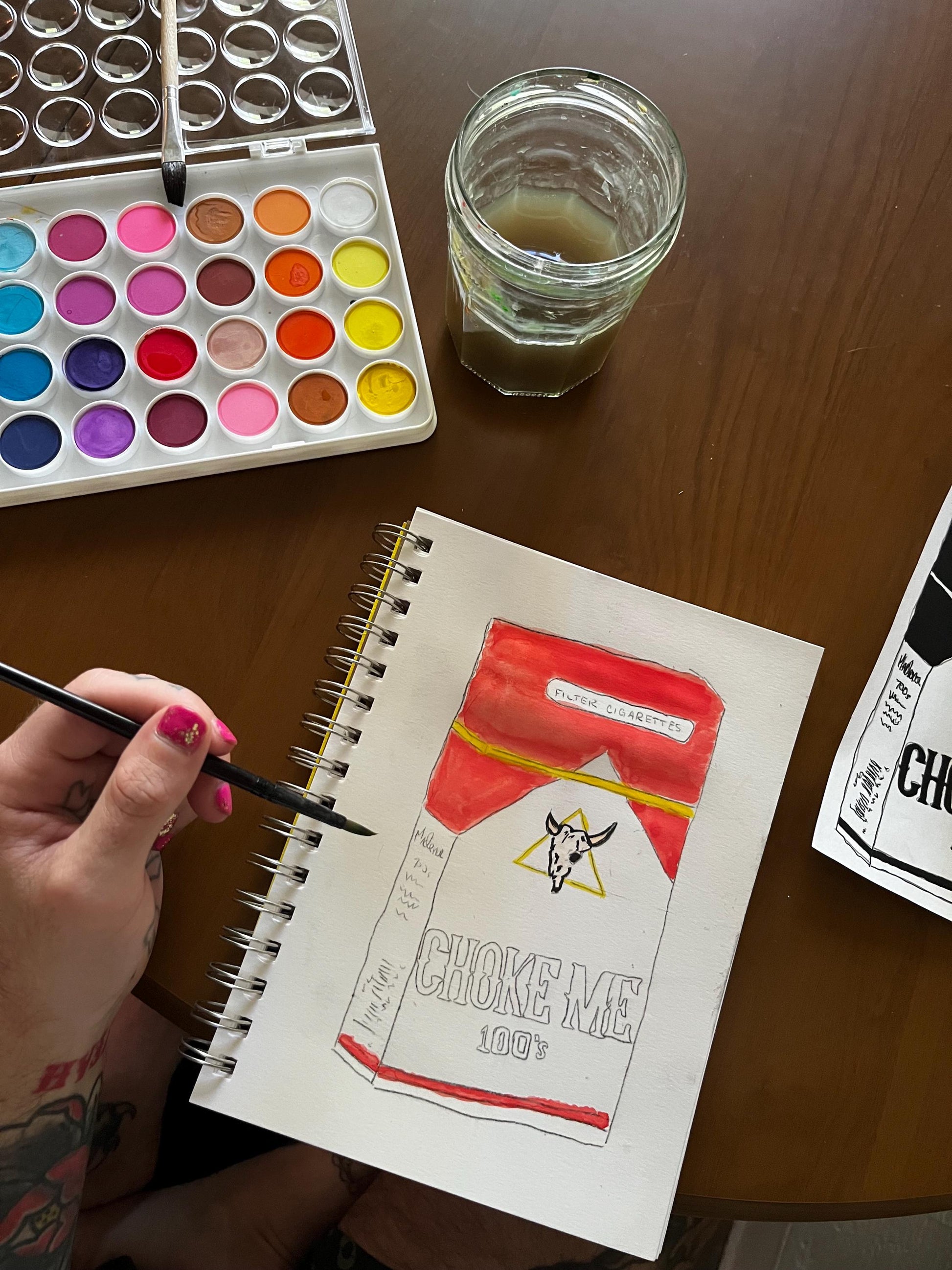 Cigarette Carton “Choke Me” Watercolor, one of one.